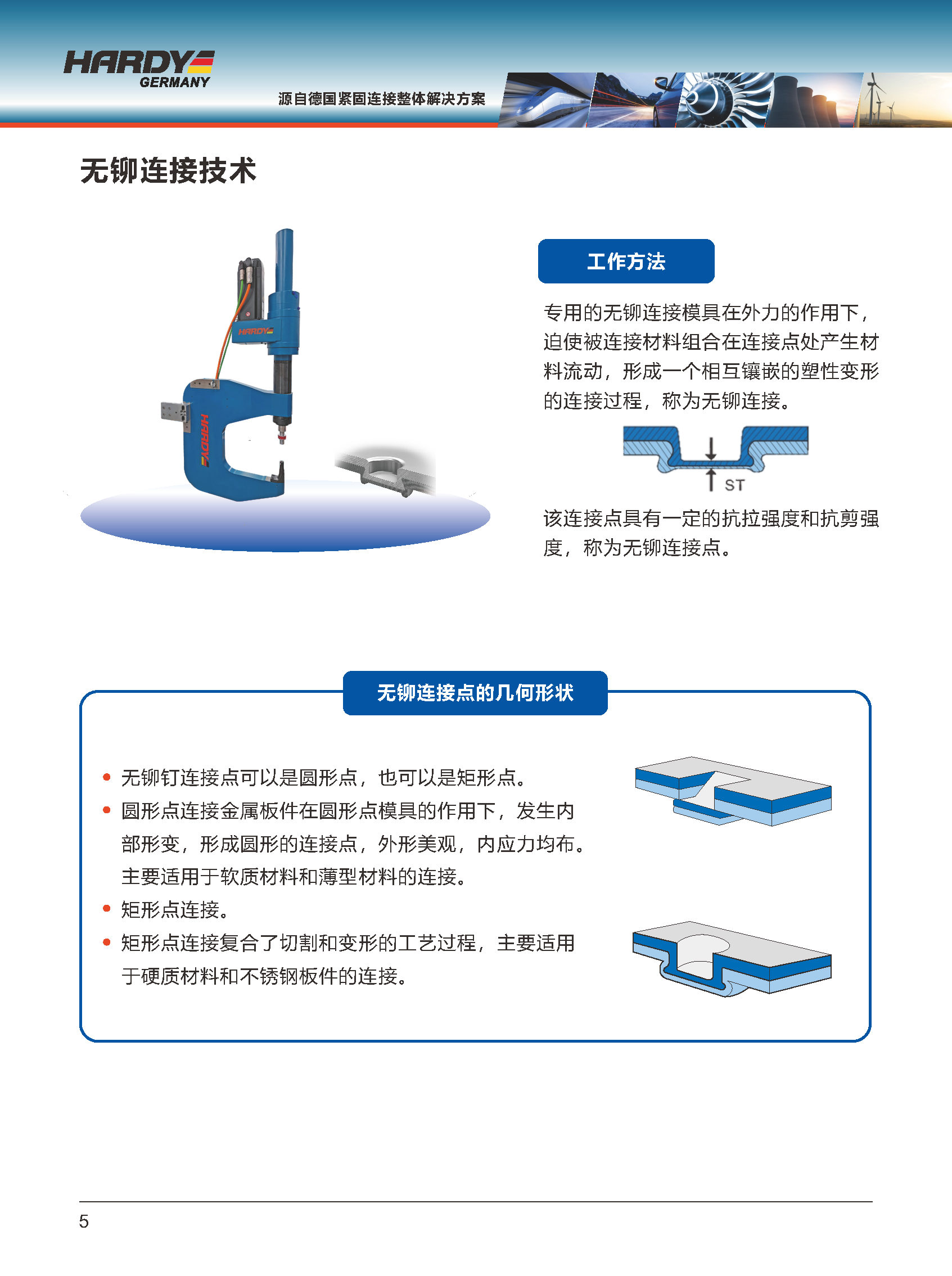 ● 适用于相同或不同材料的连接,工件不变形