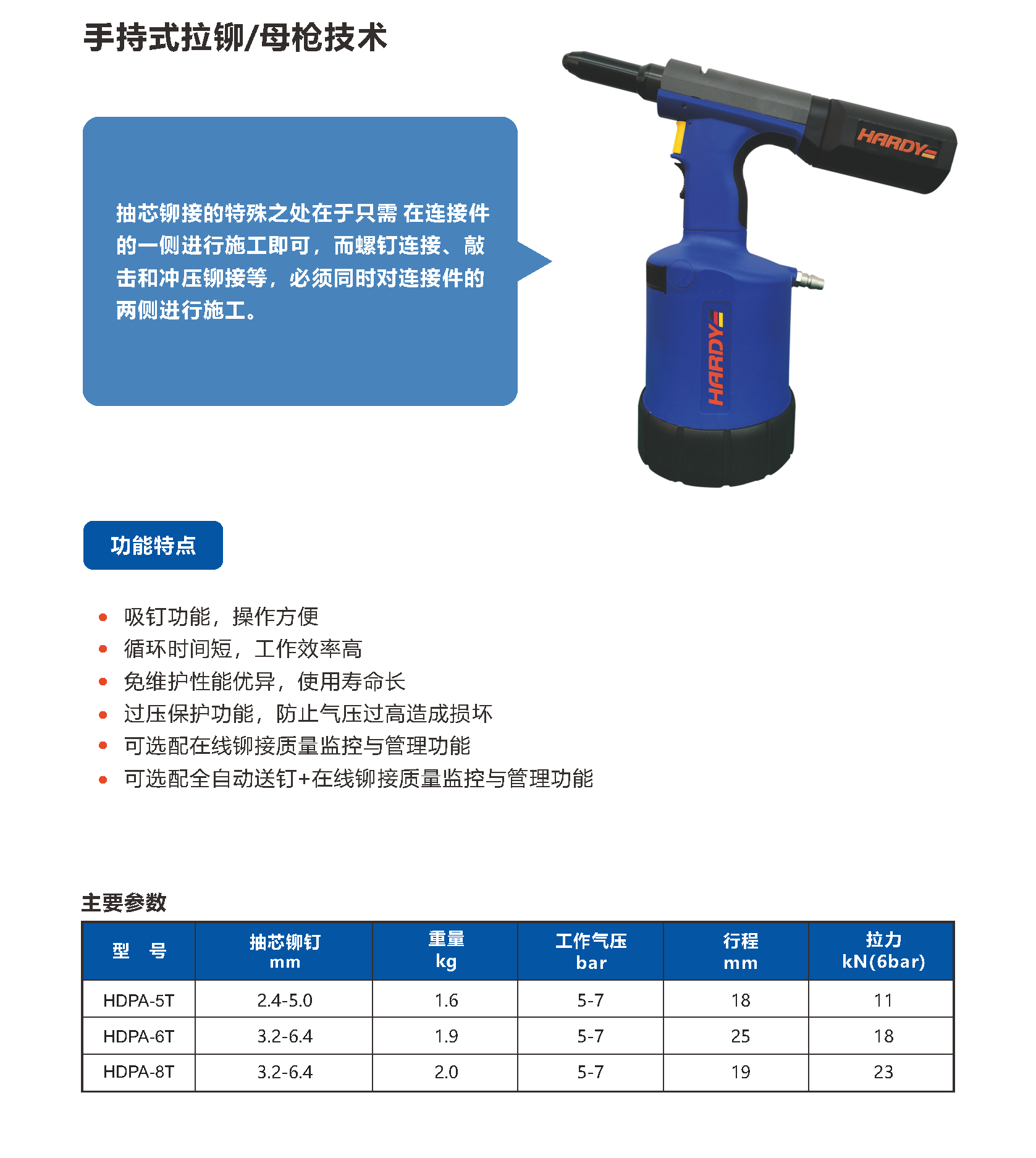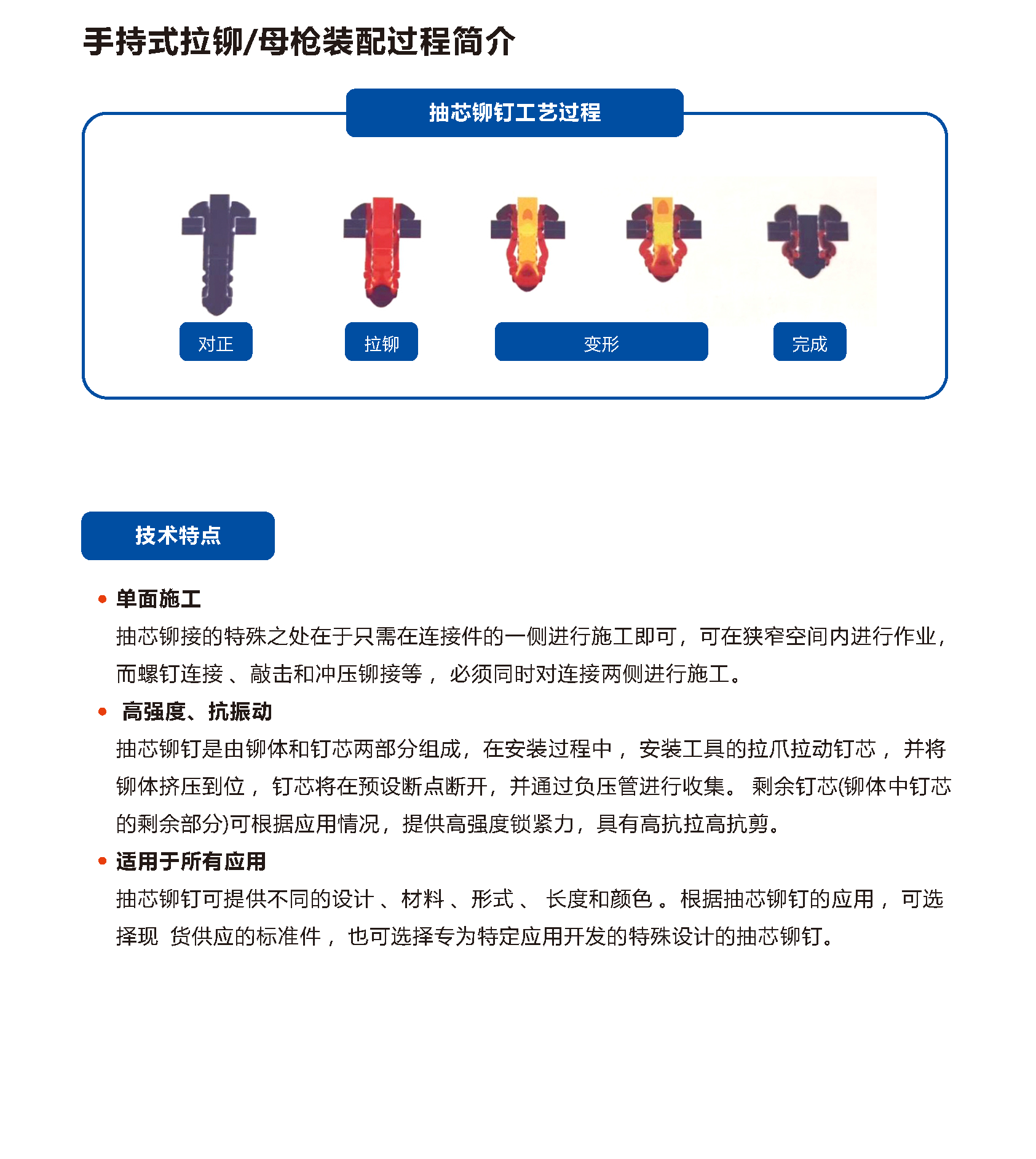 抽芯铆接的特殊之处在于只需在连接件的一侧进行施工即可,可在狭窄空间内进行作业,