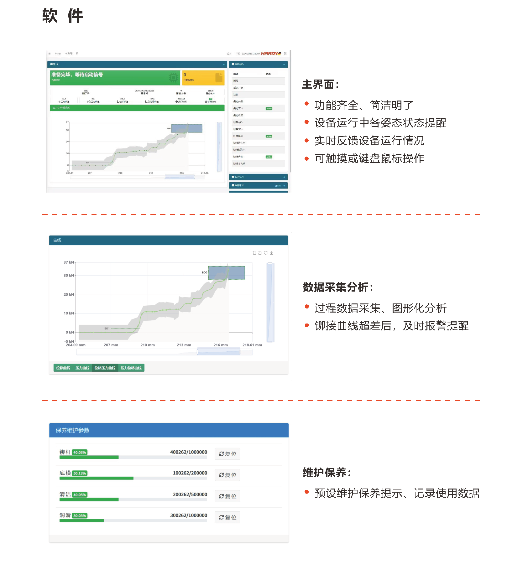 ● 可选配全自动送钉+在线铆接质量监控与管理功能